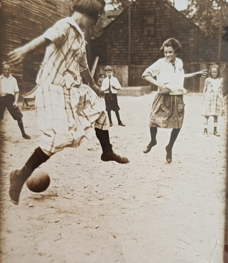 P.10.This is an amazing action shot from the USA, of children at a parochial school in the mid-west, playing ball in 1925.